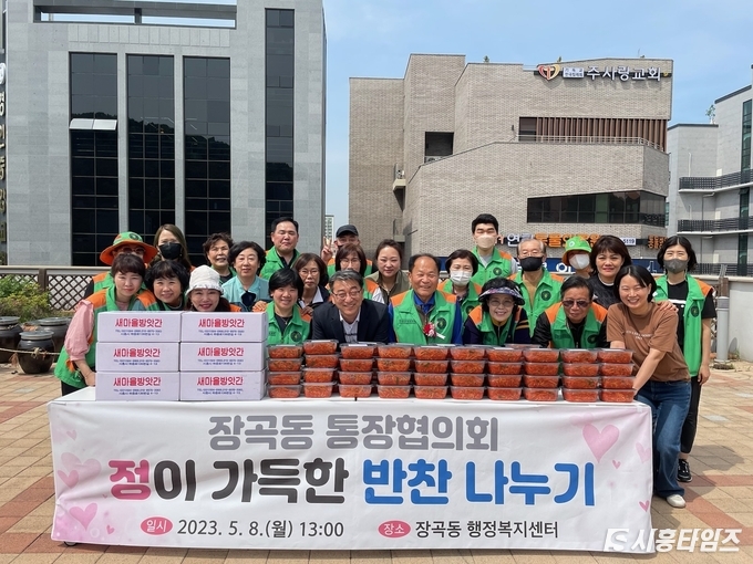 [시흥타임즈] 장곡동 행정복지센터(동장 도영찬)는 지난 8일 어버이날을 맞아 통장협의회(회장 이준형) 주관으로 ‘정이 가득한 반찬 나눔’ 봉사활동을 진행했다.당초 계획은 가정의 달 5월을 맞아 통장협의회 봄맞이 자체 워크숍을 진행할 예정이었으나, 더욱 뜻깊은 곳에 시간과 예산을 쓰는 것이 지역사회를 위해 의미 있는 일이라는 통장들의 의견에 따라 자체 워크숍 대신, ‘정이 가득한 반찬 나눔’ 봉사활동을 추진했다.