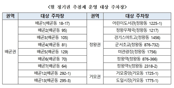 [시흥타임즈] 시흥도시공사가 배곧, 정왕, 거모권역 공영주차장 18개소에 대하여 오는 3월 10일부터 월 정기권 추첨 접수를 개시한다.