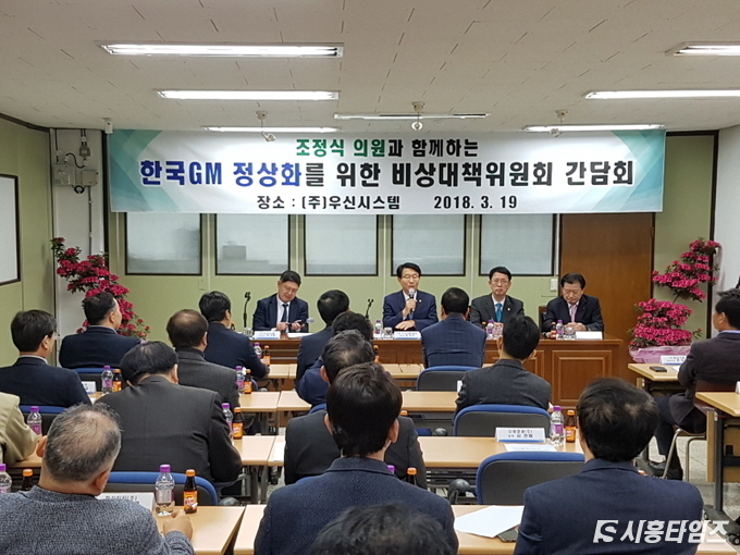 조정식 국회의원(시흥을)과 김영철 시흥시장 예비후보는 한국GM군산공장 폐쇄로 어려움을 겪고 있는 시흥 스마트허브내 우진시스템에서 한국GM 협력사 대표와 긴급 간담회를 가졌다.이날 간담회에서는 현재 한국GM 군산공장 폐쇄로 인해 한국GM 협력업체가 몰려있는 시화 스마트허브의 줄도산 우려가 현실로 나타나고 있음을 공유하였다.