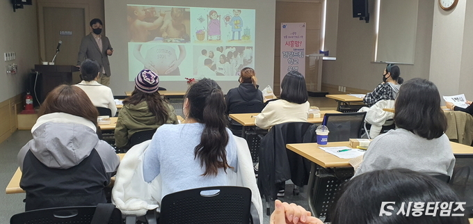 [시흥타임즈] 시흥시(시장 임병택)는 예비부모 100명을 대상으로 부부가 함께 참여할 수 있는「11월 부부 임신·출산교실」을 11월 5일부터 토요일마다 4주간 운영 중이다.교육 내용은 ▲11월 5일 「부부순산요가」, ▲11월 12일 「똑똑한 아기 뇌 프로그래밍」, ▲11월 19일「딸랑이 만들기」등을 진행했고, 오는 11월 26일에 열리는 마지막 교육에서는 아기와의 애착관계 형성을 향상시키고, 태교의 중요성을 일깨우는 계기를 마련해 주는 「신생아돌보기」, 「태명 캘리그라피 엽서쓰기」 등을 진행할 예정이다.
