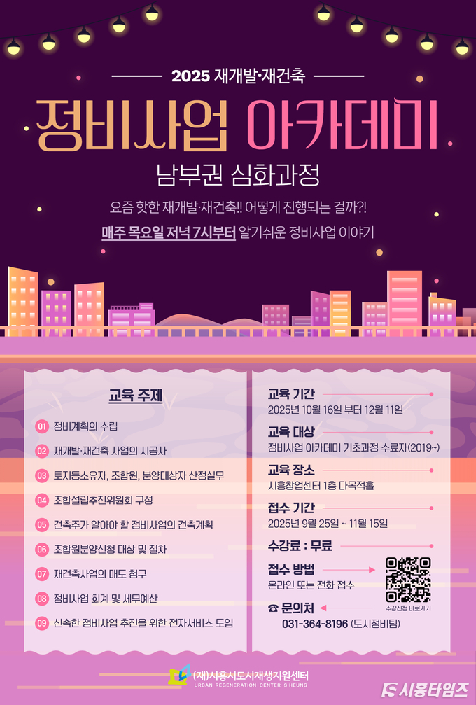 [시흥타임즈] 시흥시(시장 임병택)와 (재)시흥시도시재생지원센터(센터장 김학민)는 ‘2025 시흥시 정비사업 아카데미(남부권) 기초과정’을 지난 9월 25일 마무리했다고 밝혔다.