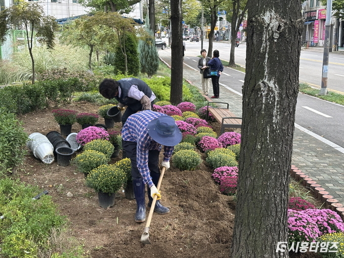 [시흥타임즈] 시흥시 정왕본동 행정복지센터(동장 박래천)는 지난 10월 14일 지역주민과 방문객에게 쾌적한 도시환경을 제공하기 위해 역전로 화단에 가을꽃을 식재하고 주변 환경 정화 활동을 진행했다.