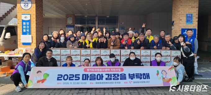 [시흥타임즈] 시흥시 매화동 자원봉사지원단 주관으로 지난 11월 22일 매화동 행정복지센터 앞마당에서 ‘마을아! 김장을 부탁해’ 행사가 유관 단체와 주민 100여 명이 참여한 가운데 성황리에 열렸다.이번 유관 단체 합동 김장 나눔 행사는 2018년부터 시작해 올해로 8년째 이어지고 있으며, 일회성 행사가 아닌 지속적인 나눔 실천을 통해 연말을 앞두고 김장을 담그기 어려운 어르신과 취약계층에 실질적인 도움을 전해왔다.