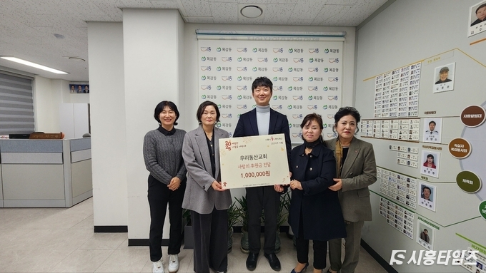 [시흥타임즈] 목감동 행정복지센터(동장 이명옥)는 지난 25일, 우리동산교회로부터 어려운 이웃을 위한 후원금 100만원을 기탁받았다고 밝혔다. 우리동산교회는 목감동의 취약계층 및 복지사각지대에 놓인 이웃을 돕기 위한 사랑의 후원금을 작년부터 지속적으로 후원하고 있다.
