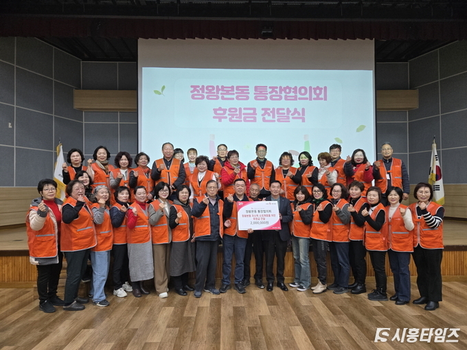 [시흥타임즈] 정왕본동 행정복지센터(동장 박래천)은 지난 11월 25일, 정왕본동 통장협의회(회장 정승기)가 지역 내 소외된 이웃을 돕기 위한 후원금 200만원을 전달했다고 밝혔다.