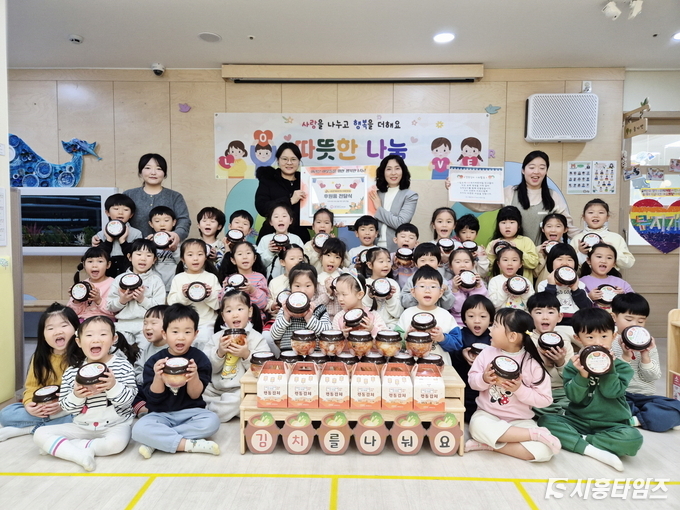 [시흥타임즈] 동절기를 맞아 지난 11월 27일 시립은계아란트리어린이집과 시립은계제일풍경채어린이집 아동들이 직접 담근 김장김치 총 100개(각 50개)를 시흥시북부노인복지관의 고령자복지주택 어르신들에게 전달하며, 지역사회 어르신을 위한 세대 간 따뜻한 나눔을 실천했다.이번 김장 나눔은 어린이들이 겨울철 이웃 어르신을 생각하는 마음을 담아 김장 재료 버무림부터 포장까지 전 과정에 참여한 의미 있는 활동으로, 지역사회 내 1·3세대가 함께 만들어 가는 상생의 장으로 마련됐다. 복지관은 전달받은 김장김치를 겨울철 밑반찬 마련에 어려움을 겪는 고령자복지주택 어르신들에게 전했다.