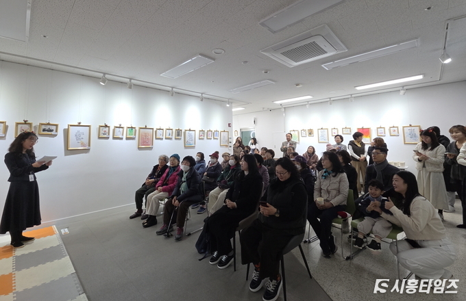 [시흥타임즈] 시흥시장곡종합사회복지관은 지난 12월 2일‘그 시절, 그 마음을 담아서 삶이 전하는 진심, 그리고 문장’을 주제로 한 ‘2025년 복도갤러리 전시 및 기념식’을 진행했다.이번 전시는 연말을 맞아 지역주민에게 다양한 문화 향유 기회를 제공하고, 복지관 공간을 활용한 주민 참여 중심의 전시 문화를 조성하고자 마련됐다. 전시는 11월에 진행된 ‘마음을 나누는 한마디’ 문구 캠페인을 통해 수집된 글귀 50여 점을 비롯해, 캘리그래피 수강생 및 동아리 ‘캘리사랑’의 작품 30여 점, 인공지능(AI) 디지털 자서전 프로그램 참여자의 영상 작품 등 총 80여 점의 글과 그림, 영상 콘텐츠로 구성됐다.
