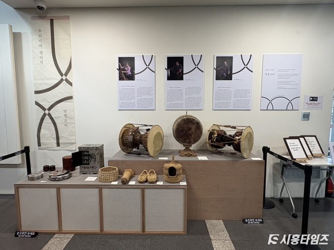 ‘찾아가는 우리 시대 장인전’은 시흥시를 기반으로 활동 중인 문화예술장인 임선빈(북 메우기), 오평숙(옻칠 공예), 김이랑(짚풀 공예)의 삶과 작품을 전시로 선보였다.