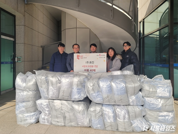 김종포 ㈜효진 대표는 “작은 마음이지만 이웃들에게 온기를 선물하고자 이불 후원에 동참했다”라며 “이웃들이 따뜻한 겨울을 보내시길 바라고, 앞으로도 다양한 나눔을 실천하는 기업으로 성장해 나가겠다”라고 말했다.