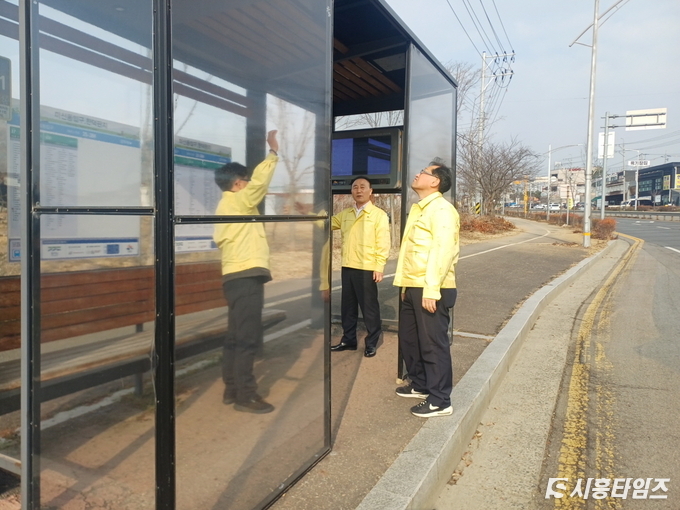 [시흥타임즈] 시흥시(시장 임병택)는 겨울철 도로 안전과 보행자 보호로 시민들의 불편을 최소화하고자 지난 12월 10일 신현동 제설함과 미산동 입구 버스정류장 한파 저감시설(방풍시설)을 점검했다. 이날 박영덕 안전교통국장을 비롯한 관계자들은 제설함의 제설제 비축 상태와 장비 관리 상황을 확인하고, 버스정류장에 설치된 방풍 시설의 작동 여부와 한파 차단 효과를 점검했다. 특히 방풍막이 실제 시민들에게 어느 정도 추위를 막아주는지를 직접 살피며 시설 안전성과 실효성을 면밀하게 확인했다.