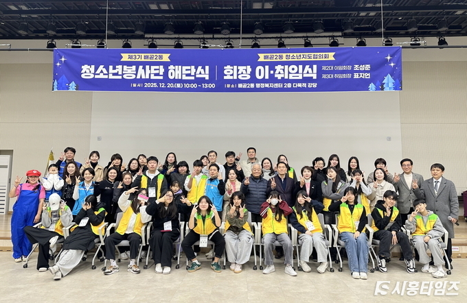 [시흥타임즈] 시흥시 배곧2동 청소년지도협의회는 지난 12월 20일 배곧2동 행정복지센터 2층 다목적 강당에서 제3기 배곧2동 청소년봉사단 해단식을 마쳤다.초등학생과 중학생으로 구성된 제3기 배곧2동 청소년봉사단은 지난 3월부터 12월까지 지역사회의 일원으로 성장하기 위한 다양한 봉사 활동에 참여해 왔다. 단원들은 취약계층 나눔 화분 만들기를 비롯해 학교폭력 예방 캠페인, 환경정화 및 쓰담 달리기 등을 경험해 왔다.