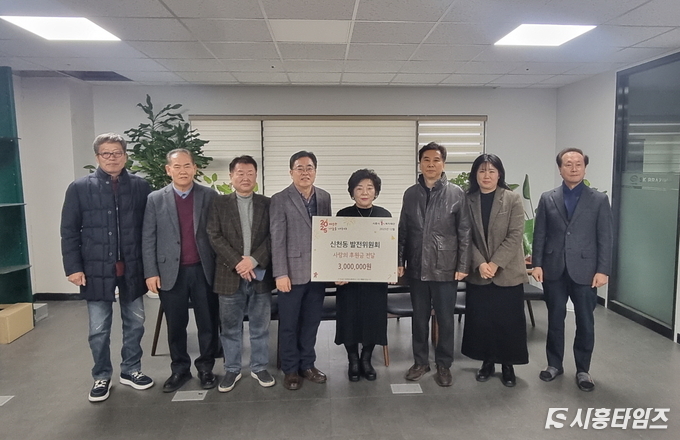 [시흥타임즈] 지역사회 발전을 위해 모인 신천동 발전위원회에서 지난 12월 23일 신천동 취약계층 지원을 위한 후원금 300만 원을 전달했다.‘신천동 발전위원회’는 지역주민의 복지 증진과 공동체 발전을 위해 다양한 나눔 활동과 사회공헌 사업을 꾸준히 추진해 오고 있으며, 이번 후원 또한 지역사회와 함께하는 상생의 가치를 실천하고자 마련됐다. 전달된 후원금은 신천동 지역사회보장협의체를 통해 취약계층 지원사업에 사용될 예정이다.