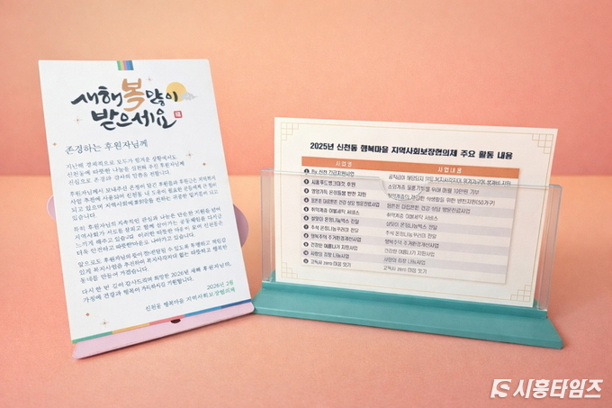 신화철 신천동장은 “후원자 여러분의 변함없는 관심과 사랑 덕분에 신천동이 더욱 따뜻한 공동체로 자리매김하고 있다”라며 “이번 감사 서한 발송이 작은 위로와 격려가 되기를 바란다. 행정복지센터도 민관 협력을 통해 취약계층 지원과 지역 복지 네트워크 활성화에 최선을 다하겠다”라고 말했다.