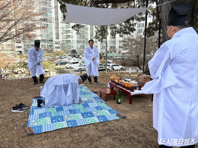[시흥타임즈] 시흥시 하중동에 있는 관곡마을은 지난 2월 21일 수령 1,000년에 이르는 향나무 아래에서 지역 전통문화를 계승하고 주민의 무사 안녕과 마을 화합을 기원하는 공동체 의례인 ‘당제’를 봉행했다.연원은 알 수 없지만, 관곡마을에서는 마을 어귀에 있는 향나무에서 당제(堂祭)를 지내왔다. 이는 오랜 세월 이어져 온 마을 고유의 전통 행사로, 주민들의 지속적인 관심과 참여 속에 지역 문화유산으로서의 가치를 이어가고 있다.