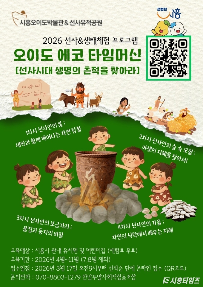 총 100회에 걸쳐 열리는 체험 프로그램은 4월부터 주중 오전 시간대에 운영되며, 전문 체험 강사가 참여해 안전하고 체계적인 교육을 진행한다. 참여 신청은 3월 17일부터 선착순으로 박물관 누리집에 게시된 홍보물의 정보무늬(큐알코드)를 통한 단체 신청으로 할 수 있다. 세부 일정과 신청 방법은 시흥오이도박물관 및 선사유적공원 누리집에서 확인하면 된다.