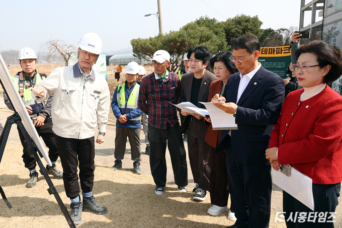 현장에는 교육복지위원회 위원, 관계 공무원, 사업시행자 및 건설사 관계자, 염수피해 대책위원회 회장 등 10여 명이 참석했다. 참석자들은 먼저 시공사로부터 임시 염수 배수관로 설치 현황과 영구 염수 배수관로 설치 계획에 대한 보고를 받은 후 과거 피해 사례를 바탕으로 한 개선 방안을 집중적으로 질의했다. 이후 12번 환기구 인근의 배수관, 수중펌프, 압송펌프 등 주요 시설을 직접 점검하며 작동 상태와 관리 체계를 면밀히 확인했다.