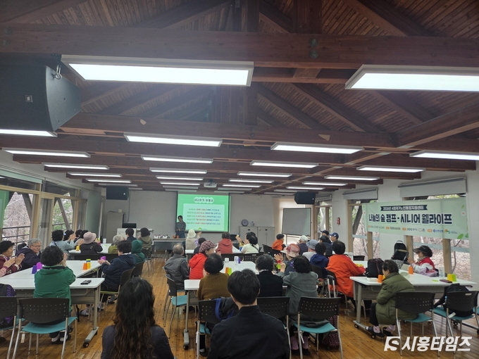 [시흥타임즈] 시흥재가노인통합지원센터는 지난 3월 31일부터 4월 1일까지 강원도 횡성 국립횡성숲체원에서 재가노인지원서비스 이용 어르신을 대상으로 ‘나눔의 숲 캠프-시니어웰라이프’ 프로그램을 진행했다.이번 캠프는 자연 체험 활동을 통해 어르신들의 신체적·정서적 건강 증진과 사회적 관계 형성을 지원하기 위해 마련됐다. 행사에는 재가노인지원서비스 이용 어르신 48명을 비롯해 자원봉사자와 종사자 등 총 56명이 참여했다.