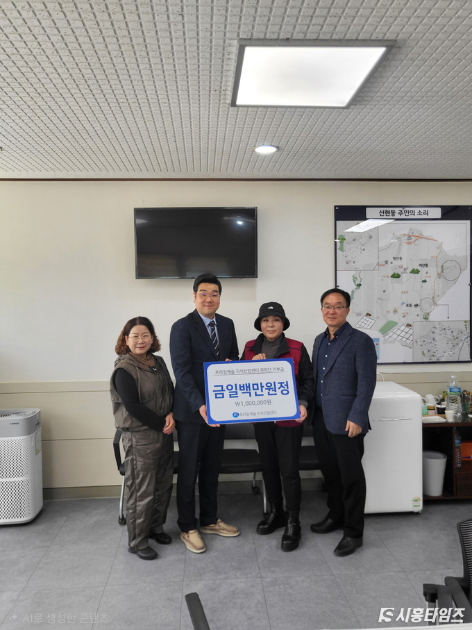 [시흥타임즈] ㈜프라임캐슬 지식산업센터는 지난 4월 9일 신현동 지역사회보장협의체에 관내 취약계층 지원을 위한 후원금 100만 원을 전달했다.이번 후원금은 프라임캐슬 지식산업센터 입주기업과 입주자들이 자발적으로 뜻을 모아 마련한 기금으로, 지역사회와 상생하고자 하는 따뜻한 마음이 담겼다. 센터는 지난해 신천초등학교 기부를 시작으로, 올해는 신현동뿐 아니라 빛길 장애인보호작업장에도 후원을 이어가며 지속적인 사회공헌 활동을 펼치고 있다.