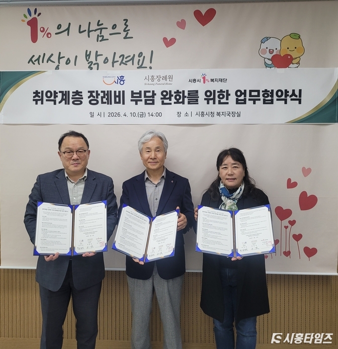 [시흥타임즈] 시흥시는 ㈜시흥장례원, 시흥시1%복지재단과 함께 ‘취약계층 장례비 부담 완화를 위한 업무협약’을 지난 4월 10일 체결했다.이번 협약은 사회적 고립으로 인한 무연고 사망자 증가와 경제적 어려움으로 최소한의 장례 절차조차 치르지 못하는 취약계층의 현실에 대응하기 위해 마련됐다. 시는 이번 협약을 통해 공공성과 사회적 책임을 강화하고, 모든 시민이 인간으로서의 존엄한 마지막을 맞이할 수 있도록 지원할 방침이다.