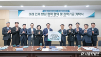 [시흥타임즈] 시흥시인재양성재단이 지난 19일 시청 다슬방에서 한국공학대학교와 지역인재 장학사업 추진을 위한 업무협약을 체결했다. 협약식과 함께 산학협력단 내 입주기업 5곳이 조성한 장학기금 총 2,510만 원의 기탁식도 진행됐다. 이날 행사에는 (주)릴리아 솔루션, 피티에스와이에스, 메타리버테크놀러지, 엠씨테크닉스, 태성 등 5개 입주기업 대표와 시 관계자, 한국공학대학교 총장 등 10여 명이 참석했다. 참석자들은 지역 인재 양성을 위한 협력 의지를 확인했다. 이번 협약은 한국공학대학교 제2캠퍼스(리서치파크) 산학협력관 내 공정혁신 시뮬레이션센터와 협력하는 입주기업들이 자발적으로 조성한 재원을 지역사회에 환원하고, 이를 초중고 학생 대상 장학사업에 연계하기 위해 마련됐다. 기탁금은 시흥시 미래인재 양성을 위한 장학 재원으로 활용된다. 재단은 기탁 취지에 따라 재원을 투명하고 공정하게 관리·운영할 계획이다. 양 기관은 지역인재 발굴과 장학지원 확대, 산학협력 성과의 지역사회 환원 체계 구축, 대학·기업·지역 간 지속 가능한 상생협력 모델 확산 등을 위해 협력하기로 했다. 임병택 시흥시장은 이번 협약이 대학과 기업이 함께 이룬 산학협력 성과가 지역인재 양성으로