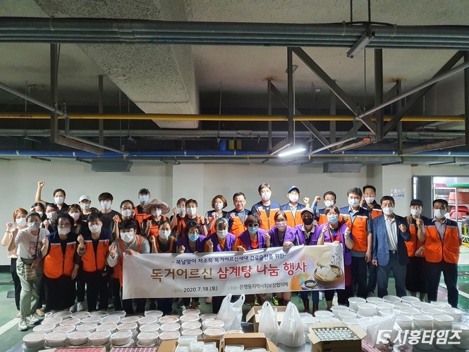 [시흥타임즈] 초복이었던 지난 18일 시흥시 은행동 지역사회보장협의체가 저소득 독거어르신세대를 대상으로 삼계탕과 샴푸 등 생활용품 3종을 제공했다. 코로나19로 생활이 더욱 어려워진 어르신들을 위해 삼계탕과 김치를 직접 만들어 80여 저소득 독거어르신들에게 삼계탕과 샴푸 등 생활용품(자은자리복지관 후원)을 어르신 자택을 방문해 전달했다.