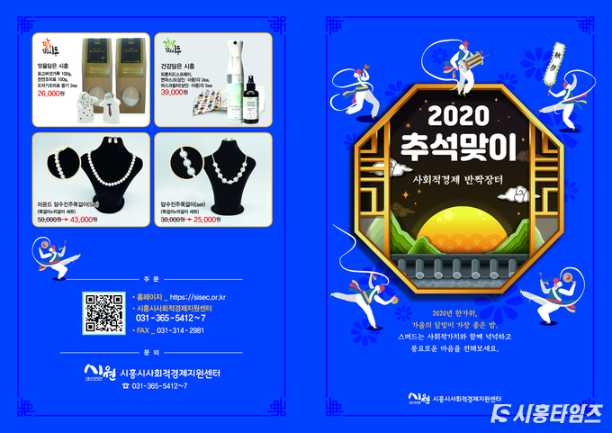 ‘추석맞이 사회적경제 반짝장터’는 전화주문 및 사회적경제지원센터 홈페이지(https://sisec.or.kr/)의 팝업창을 통해서 구매신청 할 수 있다. 궁금한 사항은 시흥시사회적경제지원센터(031-365-5412~7)로 문의하면 된다.