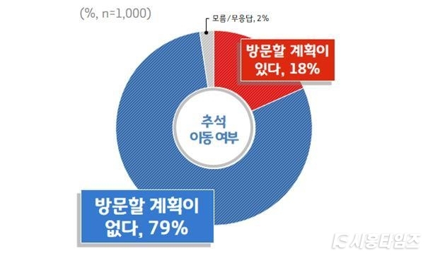 [시흥타임즈] 경기도민 10명 가운데 8명은 올 추석에 고향방문 계획이 ‘없다’는 여론조사 결과가 나왔다.경기도가 지난 19일 18세 이상 도민 1,000명을 대상으로 한 여론조사 결과에 따르면, 도민의 79%는 이번 추석 연휴 기간 고향방문 계획이 ‘없다’고 밝혀 정부의 추석 이동 자제 권고에 협조하는 모습을 보여줬다. 계획이 ‘있다’는 응답은 18%에 그쳤다.