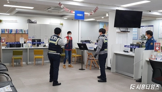[시흥타임즈] 대야동 주민센터가 지난 11월 30일 대야동 주민센터 1층 민원실에서 시흥경찰서 대야파출소와 합동으로 민원상담 중 발생할 수 있는 폭언·폭행 등 특이민원 대비 모의훈련을 실시했다.이번 훈련은 최근 주민센터에서 발생한 공무원 신변 위협사건과 같은 악성 민원에 적극 대응하기 위해 민원인의 폭언, 폭행 등 비상상황에서 안전하고 신속하게 대응하는 능력을 강화하는 것을 목적으로 기획됐다.