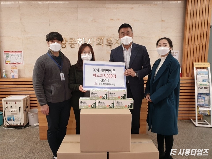[시흥타임즈] ㈜에이원씨에프가 최근 코로나19 확산으로 마스크 구하기 어려운 주민들을 위해 덴탈마스크 5,000장을 정왕종합사회복지관에 전달했다. 김준성 대표는 “코로나19의 확산으로 어려움을 겪고 있는 지역 주민분들께 도움이 되고 싶었다”고 전하며, “모두 힘을 합치면 극복해낼 수 있을 것이며, 오늘 전달한 마스크가 힘이 됐으면 좋겠다”고 말했다.
