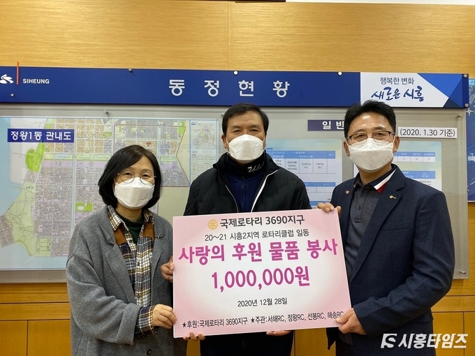 국제로터리3690지구 시흥2지역 대표(유해중)는 “코로나19로 인해 더욱 추운 겨울을 보내는 이웃들이 따뜻한 연말을 보내는데 조금이나마 도움이 되었으면 한다”고 전했다.