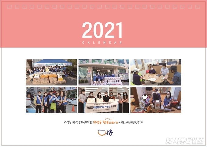 [시흥타임즈] 연성동행정복지센터가 2020년 한 해 동안 후원해주신 후원자들의 활동모습과 감사의 마음을 담은 ‘2021년도 감사 캘린더’를 제작 및 배부했다. ‘2021년도 감사 캘린더’에는 한 해 동안 후원해주신 여러 후원자들의 모습과 복지사각지대 발굴, 특화사업 등 다양한 분야에서 적극적으로 활동에 참여해주신 연성동 행복더하기 지역사회보장협의체 위원들의 활동모습, 연성동 행정복지센터 맞춤형복지팀의 주요 활동 등을 수록해 의미를 더했다.
