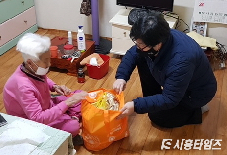 [시흥타임즈] 대야신천행정복지센터 마을자치과가 지난 27일 관내 저소득 독거노인들을 방문해 밑반찬을 전달하고 안부를 확인했다. 이번에 전달한 반찬은 반찬나눔자리문화공동체에서 후원했다. 밑반찬을 전달 받은 어르신은 “직접 방문해서 말벗이 돼 주고 밑반찬을 가져다줘 감사드린다. 밑반찬이 필요했는데 큰 도움이 될 것 같다”고 전했다.