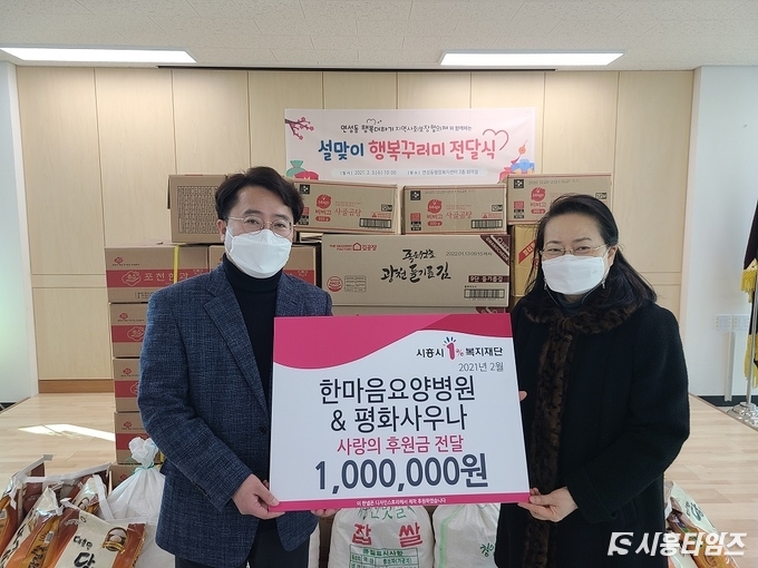[시흥타임즈] 한마음요양병원&평화사우나(대표 김명숙)가 지난 3일 1%복지재단을 통해 연성동 지역사회보장협의체(공공위원장 이상익/민간위원장 김명숙)로 후원금 100만원을 전달했다. 김명숙 대표는 연성동 지역사회보장협의체를 이끌고 있는 위원장으로 활동하며 계절음식 및 밑반찬 나눔 사업, 복지위기가구 발굴 비대면 홍보 캠페인, 저소득층 맞춤형 기금사업 등 관내 어려운 이웃을 위한 다양한 사업을 기획ㆍ진행하고 있다. 평소에도 지역 내에서 도움이 손길이 필요한 곳이면 마다하지 않고 나눔 활동을 펼치고 있다.