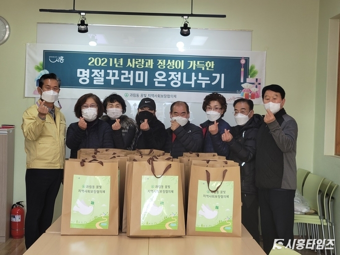 [시흥타임즈] 과림동 꿈빛 지역사회보장협의체가 지난 3일 과림동 행정복지센터 내 2층 톡톡방에서 지역사회보장협의체 위원과 유관단체인 통장협의회(명예사회복지공무원)와 함께 설 명절맞이 꾸러미 온정나누기 행사를 실시했다.이번 행사는 과림동 꿈빛 지역사회보장협의체의 기금을 통해 추진됐으며, 과림동 꿈빛 지역사회보장협의체 위원(11명)과 통장협의회(명예사회복지공무원)위원(5명) 등 16여명이 꾸러미 포장과 가구 방문에 참여했다.
