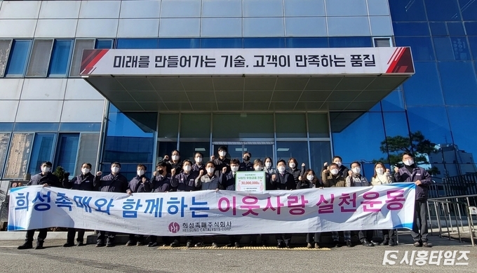 강한성 시흥푸드뱅크마켓센터장은 “코로나 19 바이러스 재확산으로 모두가 어려운 상황임에도 불구하고 소외계층에 대한 희성촉매(주) 임직원의 사랑과 관심으로 올해 18회째를 맞았다”며 “후원이 무엇인지 몸소 보여주는 모범사례로 하나의 기부역사를 만들었다고 해도 과언이 아니다”고 밝혔다.