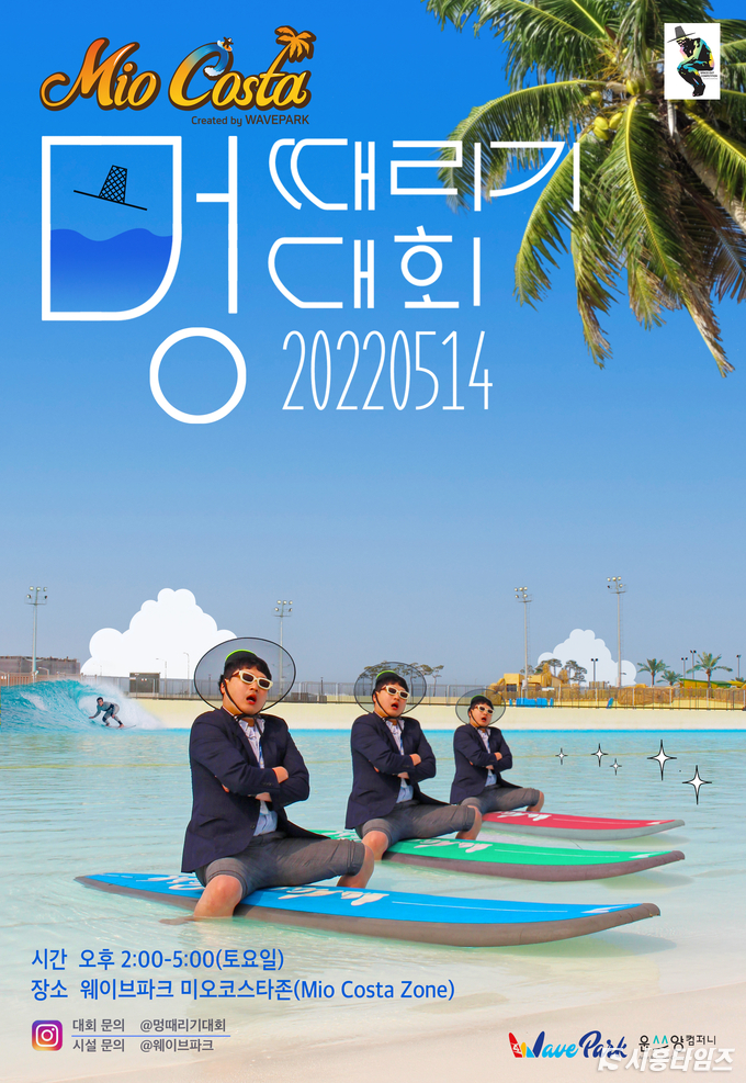 미오 코스타 멍때리기 대회는 참가자를 위해 특별히 도심 속 탁 트인 휴양지의 서핑 보드 위에서 출렁이는 파도를 보며 ‘물멍’ 때릴 수 있는 여유로운 시간을 마련했다. 이번 대회는 바쁘고 치열하게 사는 현대인이라면 누구나 신청할 수 있으며 신청 기간은 4월 25일부터 5월 5월까지로 웨이브파크 홈페이지(https://wavepark.co.kr/)에서 가능하다.