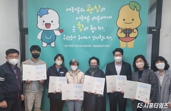 [시흥타임즈] 과림동 행정복지센터의 맞춤형복지팀은 지난 27일 관내 도움이 필요한 어려운 이웃을 발굴하는 명예사회복지공무원 6명을 신규 위촉(충원)했다. 명예사회복지공무원이란, 지역사회에서 위기가구를 찾거나 지원하는 활동에 자발적으로 참여하는 명예직 지역 봉사자를 말한다. 생활업종종사자, 신고의무자, 종교단체 등으로 이뤄졌으며, 생계·의료·주거 등 부문의 취약가구를 찾아 각종 복지제도를 안내하며, 상황에 따라 동 행정복지센터와 함께 돌봄, 사례관리 등을 진행한다.