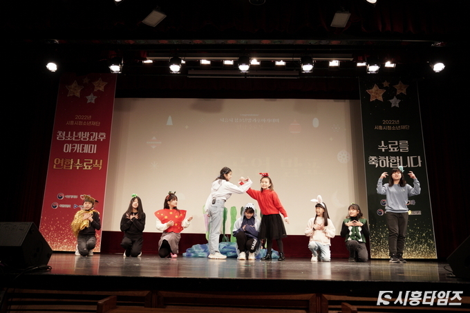 [시흥타임즈] (재)시흥시청소년재단(대표이사 이덕희)이 운영하는 시흥시 청소년방과후아카데미(이하‘방과후아카데미’)가 지난 24일 시흥시청소년수련관 한울림관에서 ‘방과후아카데미 연합수료식’을 진행했다.방과후아카데미는 청소년들의 건강한 성장을 지원하는 사업으로, 여성가족부와 시흥시가 방과 후 돌봄이 필요한 청소년에게 체험활동, 학습보충, 급식 등의 종합적인 돌봄서비스를 제공한다. 다문화, 맞벌이, 다자녀, 저소득 가정 등의 초등 4학년부터 6학년 청소년이라면 누구나 참여할 수 있다.