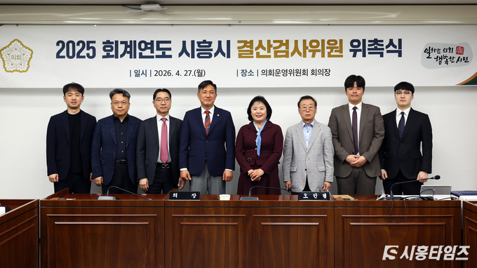 [시흥타임즈] 시흥시의회가 27일 의회운영위원회 회의장에서 2025회계연도 시흥시 결산검사위원 위촉식을 개최했다.이번 위촉식은 2025회계연도 세입·세출 결산에 대한 전문적이고 객관적인 검사를 수행할 위원을 공식 위촉하기 위해 마련됐다.