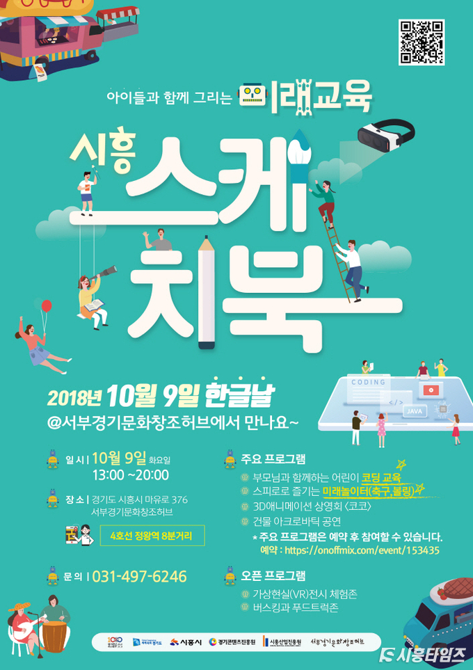 경기도와 시흥시, 경기콘텐츠진흥원이 아이들과 함께 그리는 미래교육 ‘시흥스케치북’을 개최한다.‘시흥스케치북’은 도민들에게 4차 산업혁명과 관련된 문화 콘텐츠 체험 기회를 제공하기 위한 프로그램으로 시흥시 정왕동에 위치한 서부경기문화창조허브(이하 ‘서부허브’)에서 9일 열릴 예정이다.