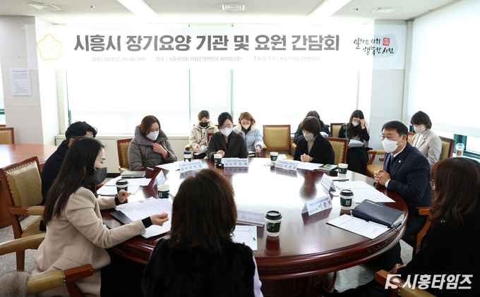 [시흥타임즈] 시흥시의회가 지난 20일 고령화 시대에 노인 돌봄의 중심 역할을 하는 시흥시 장기요양기관 종사자의 현장 목소리를 청취하고, 처우 개선 방향을 논의하기 위해 간담회를 개최했다. 이날 간담회에는 국민건강보험공단 시흥지사, 시흥시노인장기요양기관 협회, 관계 공무원 등 10여 명이 참석해 장기요양기관 운영상 어려운 점을 허심탄회하게 나누고, 조례 제정 등 장기요양기관 종사자의 근무환경을 개선하기 위한 다양한 지원 방안에 대해 의견을 나눴다.