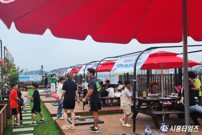 [시흥타임즈] 정왕본동 행정복지센터는 지난 10일 정왕전통시장 옥상 라온마루쉼터에서 2023년 주민참여예산 사업인 ‘다함께 나누는 정왕시장 행사’를 개최했다.이날 행사에는 다함께 어울림식탁, 나만의 장바구니 만들기, 나만의 키링 만들기, 나만의 미니꽃다발 만들기, 추억을 찰칵(인생 네컷), 각국의 전통놀이 체험 등 다양한 프로그램이 운영됐다. 특히 내·외국인 150여 명 이상의 주민들이 함께 어울리며 즐기는 소규모 축제의 장이 펼쳐졌다.