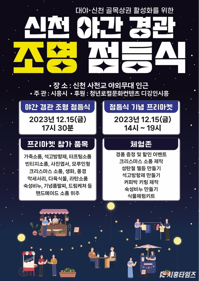한편, 이날 진행되는 플리마켓에서는 청년로컬문화콘텐츠 ‘디깅인시흥’이 사천교 야외무대 옆에서 점등식 당일 14시부터 19시까지 가죽공예, 빈티지 소품 등을 판매한다. 이외에도 다양한 체험활동이 준비돼 있다.
