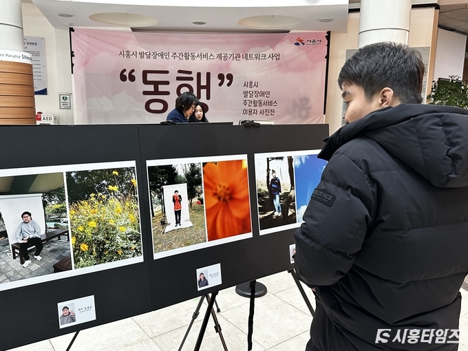 [시흥타임즈] 시흥시(시장 임병택)는 지난 9일 시청 1층 민원실 로비에서 ‘발달장애인 주간활동 서비스’ 이용자가 펼치는 사진전 ‘동행’을 개최했다. 전시는 12일까지 진행된다.‘발달장애인 주간활동 서비스’는 성인 발달장애인에게 건강증진 활동, 직장탐방, 창의형 프로그램 등을 제공해 발달장애인의 자립생활 기반을 마련하고, 사회 참여 기회를 제공하는 프로그램이다.
