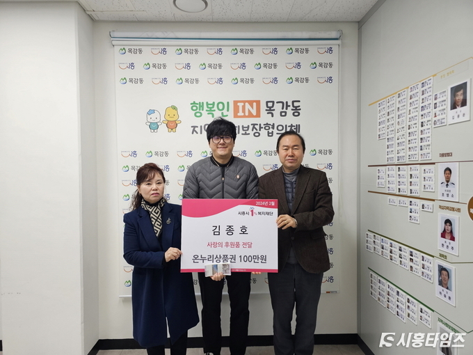 [시흥타임즈] 시흥시 목감동 행정복지센터(동장 정호종)에는 지난 16일 목감동 주민인 김종호 씨가 찾아와 지난해 소방청으로부터 ‘119의인상’으로 받은 상금(온누리상품권 100만 원)을 어려운 이웃을 위해 써달라며 기부해 지역사회에 귀감이 됐다.‘119의인상’은 재난 및 사고 현장에서 자신의 위험을 무릅쓰고 타인의 생명을 구한 이들의 정신을 기리고 예우하기 위한 상이다.
