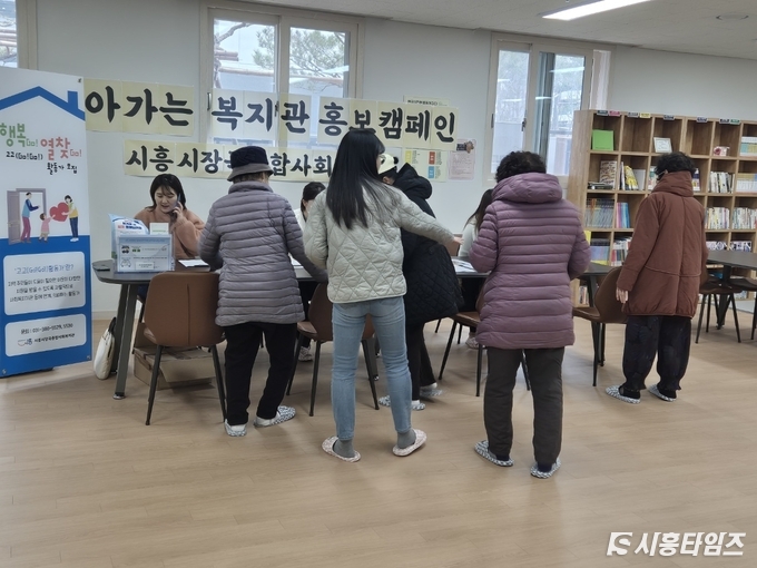 [시흥타임즈] 시흥시장곡종합사회복지관은 지난 27일 시흥장현 LH23단지 작은도서관에서 지역주민을 대상으로 ‘찾아가는 이동식 복지관 홍보 캠페인’을 펼쳤다.이날 캠페인을 통해 3월부터 진행될 이동식 복지관 프로그램의 주민 참가 신청을 받고, 복지관 홍보와 더불어 복지 사각지대 발굴에 힘쓰며 관련 상담을 진행했다.