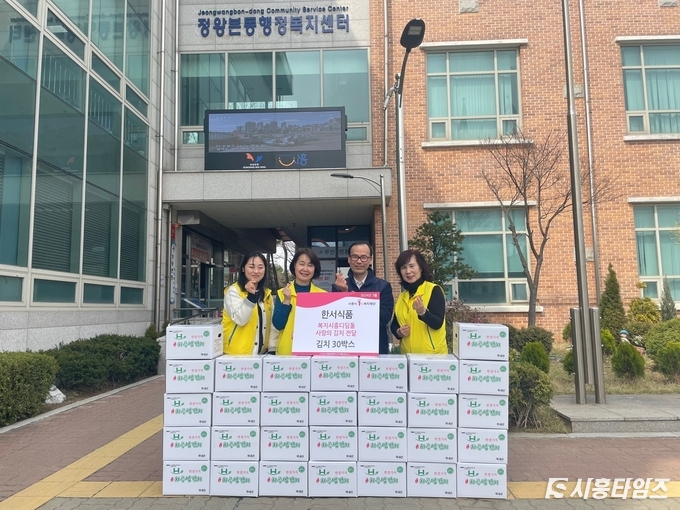 이날 전달식에는 ㈜한서식품 대표, 정왕본동 지역사회보장협의체, 정왕본동행정복지센터 관계자가 참여했다. 정기후원을 통해 나눔을 받은 김치는 소외되는 이웃이 없는지 지속적으로 주위를 살펴 필요한 주민에게 전달할 예정이다.