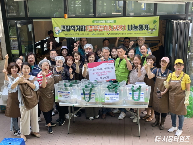 [시흥타임즈] 시흥시 정왕본동 지역사회보장협의체는 지난 27일 한국마사회 시흥지사 공모사업을 통해 확보한 후원금 612만 원으로 건강 먹거리 나눔 행사를 성공적으로 진행했다.이 행사는 정왕본동 지역사회보장협의체 주관으로 한국마사회 시흥지사, 시화부동산중개업협의회, 정왕본동 관계단체, 정왕본동대, 행정복지센터 직원 등이 협력해 열무김치(3kg)와 된장(2kg)을 담아 관내 취약계층 200가구에 전달하는 사업으로 진행됐다.