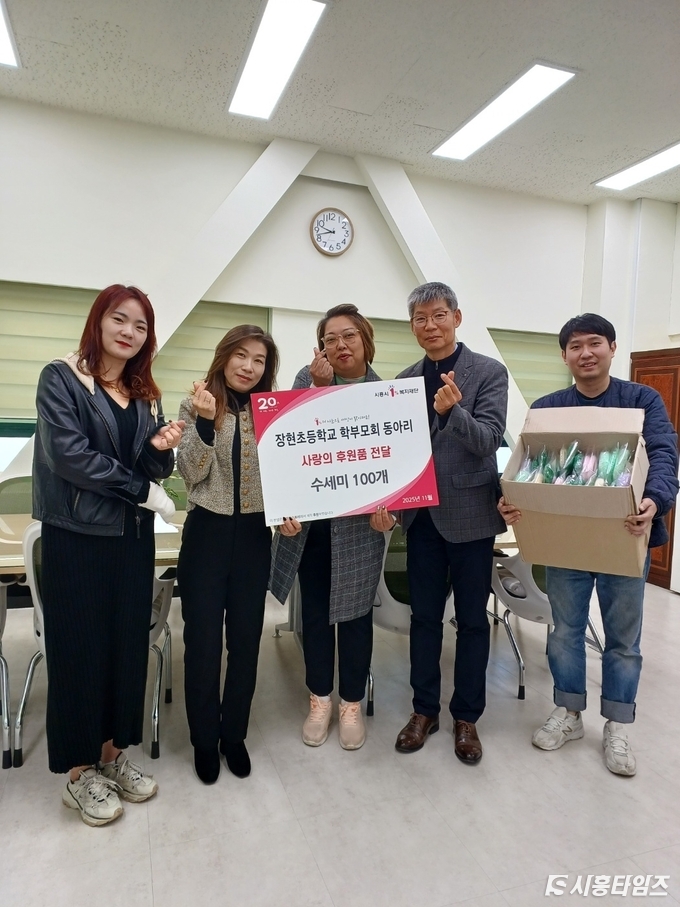 이번 후원은 시흥장현초 학부모회가 지역사회에 따뜻한 정을 나누기 위한 봉사활동의 일환으로 추진된 것으로, 학부모들이 자발적으로 참여해 직접 손으로 수세미를 제작했다. 전달된 수세미는 관내 저소득 독거 어르신 등 취약계층 가정에 전달될 예정이다.