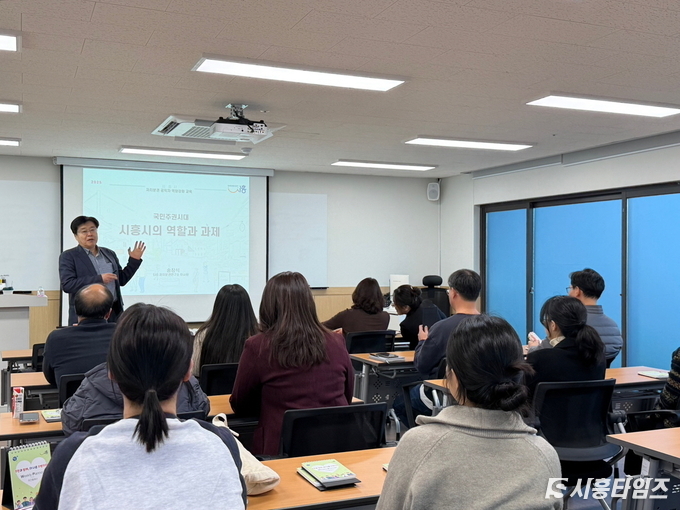[시흥타임즈] 시흥시(시장 임병택)는 지난 11월 14일 시흥시자원봉사센터에서 공직자를 대상으로 자치분권에 대한 이해를 높이고 더 나은 지방자치 실현을 도모하고자 ‘자치분권 공직자 역량 강화 교육’을 추진했다.이번 교육은 송창석 (사)지방분권연구소 이사장을 초청해 진행됐다. 제도 분석을 통한 자치분권의 발전 방향과 지방자치가 나아가야 할 미래 방향을 공유하고자 마련된 교육에서 송 이사장은 “지방자치의 본질은 주민의 삶을 풍요롭게 하는 데 있다”라고 강조했다.